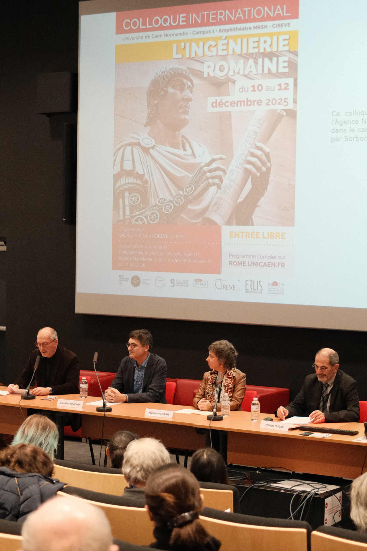 Le public a été nombreux pour assister aux 31 communications données lors du colloque international sur l’ingénierie romaine. Les conférenciers invités sont venus des quatre coins de la France, d’Italie, de Suisse et de Belgique pour faire de cette manifestation un grand moment d’échanges scientifiques. Le podcast sera disponible en début d’année 2026 et les actes de ce colloque seront publiés aux Presses Universitaires de Caen.