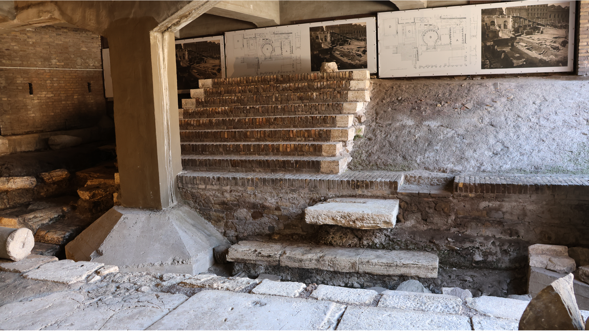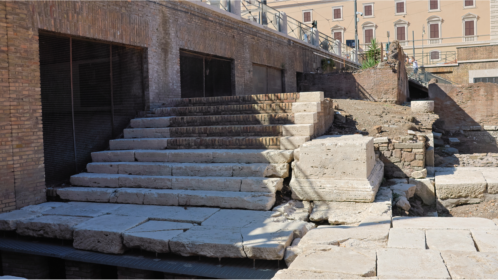 Le temple D, dédié aux Lares Permarini, était le temple le plus grand de la zone sacrée du Largo Argentina et il en occupait l’extrémité Sud.