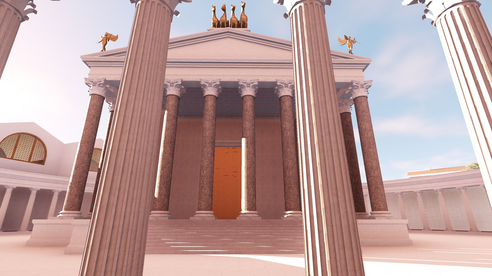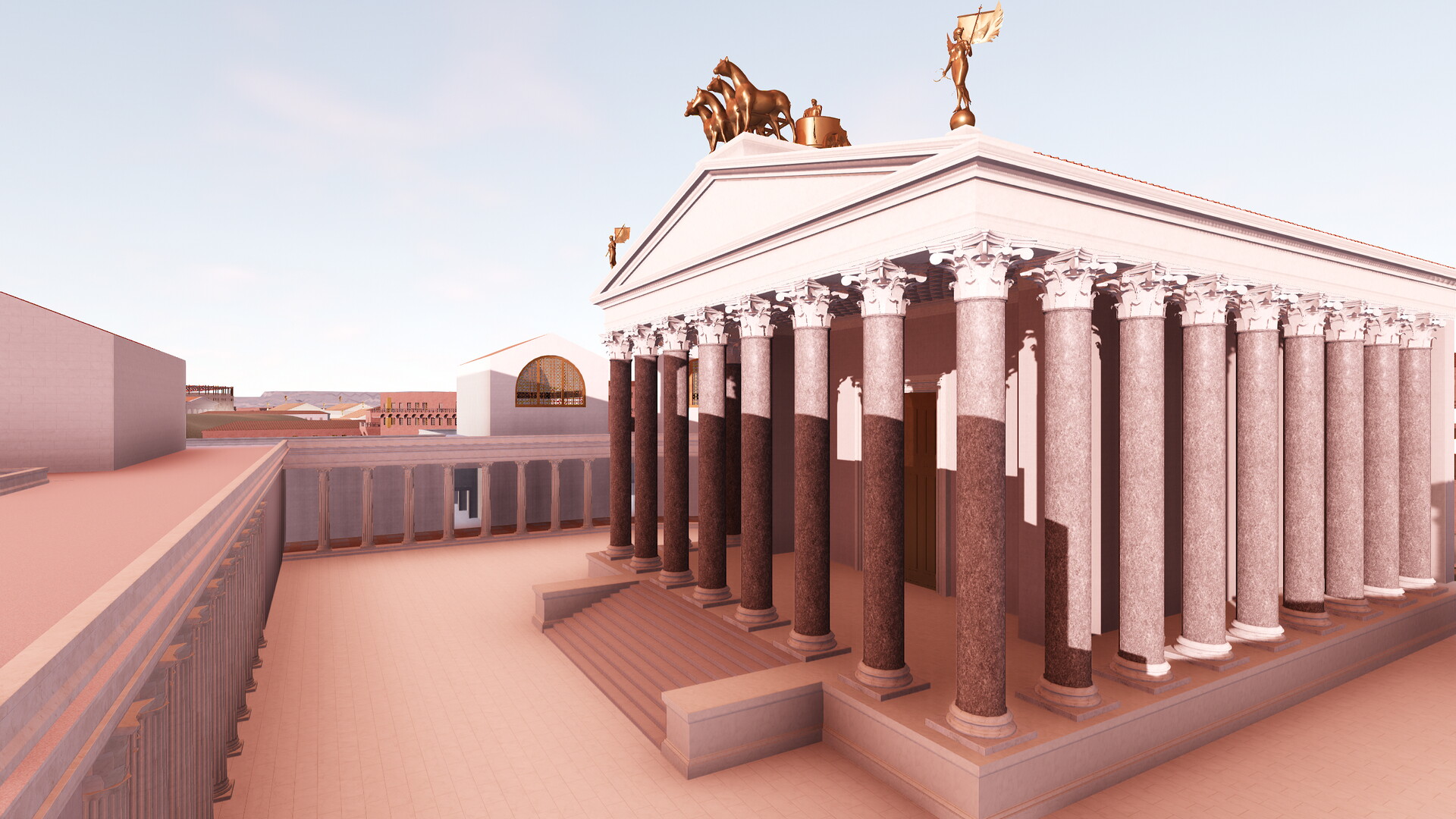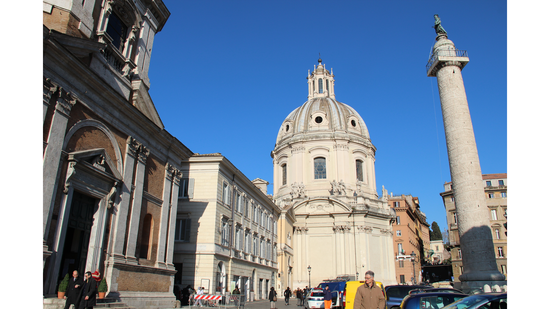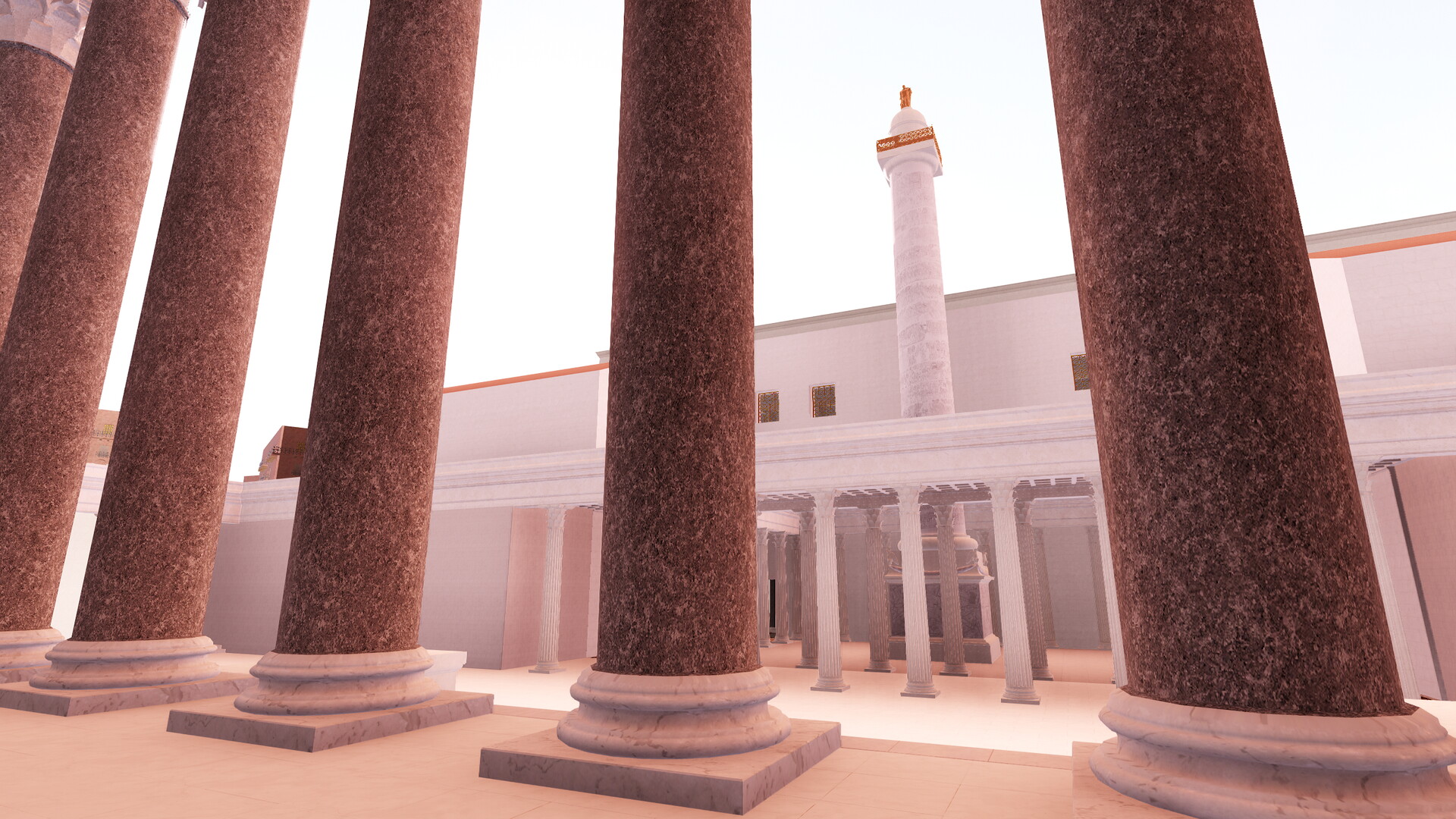 Le temple de Trajan se trouve sur le Forum éponyme. Après de multiples débats, on le localise aujourd’hui en face de la colonne de Trajan côté Champ de Mars, c’est à dire tel que P. Bigot l’a placé sur sa maquette.