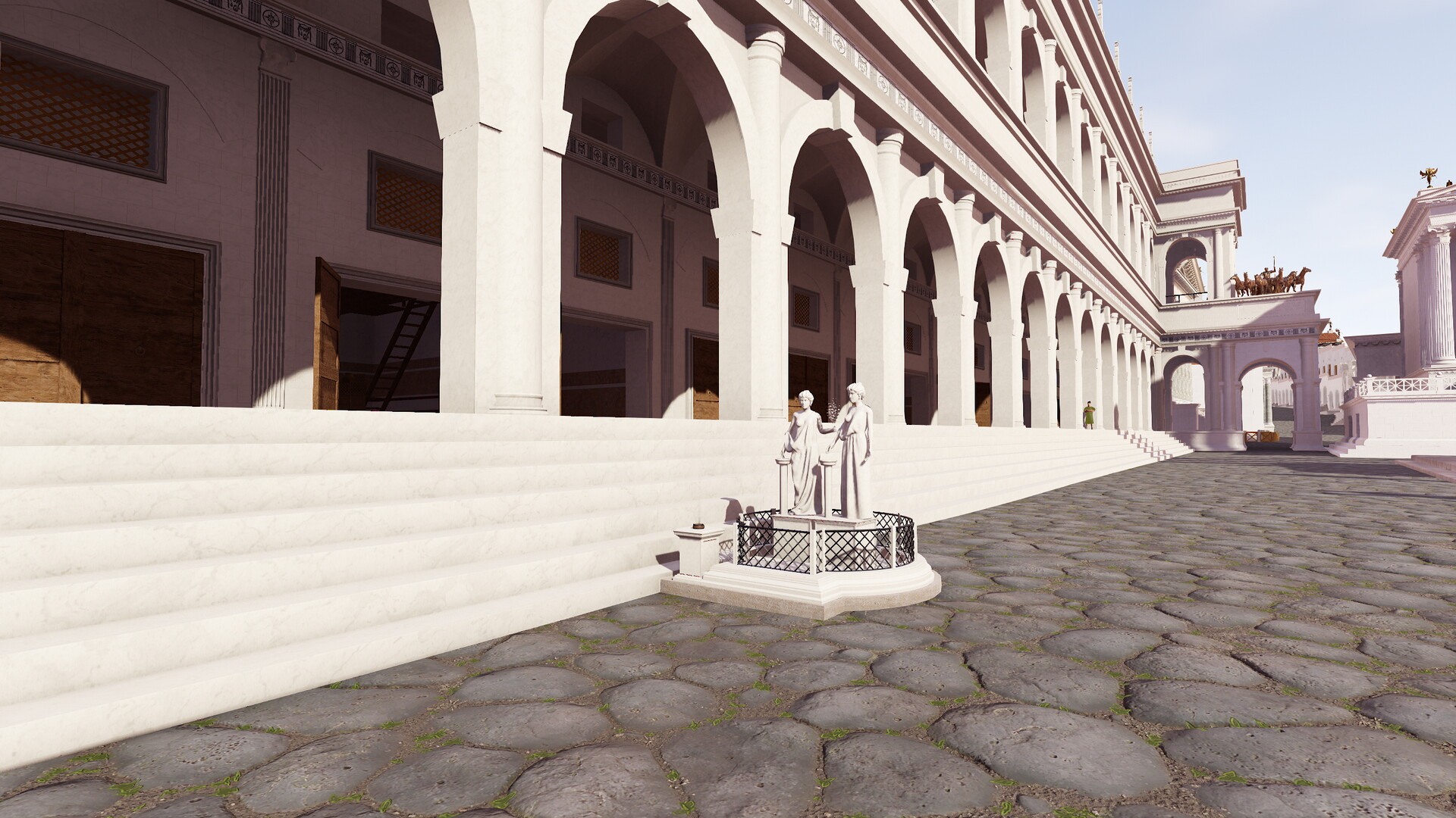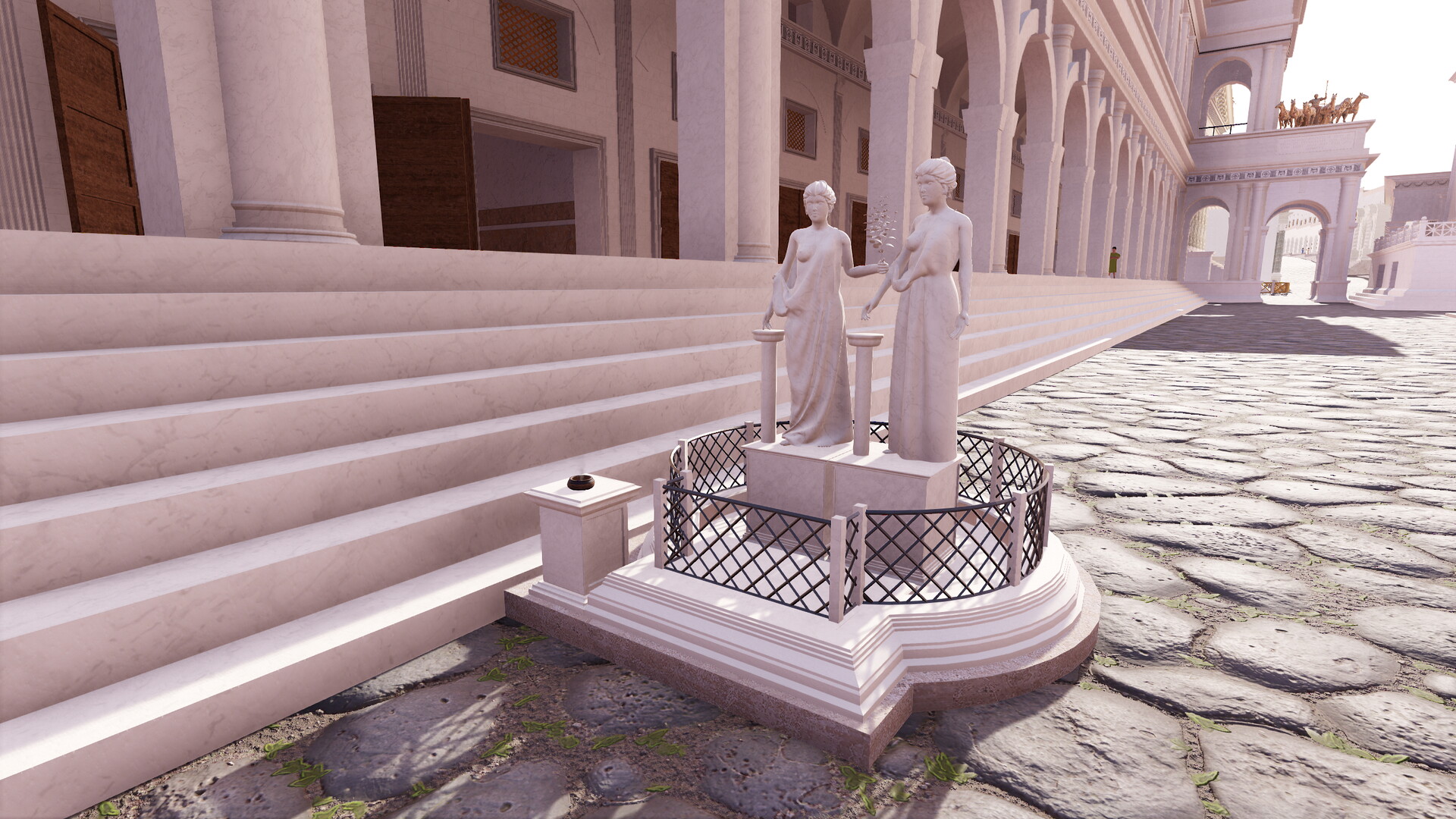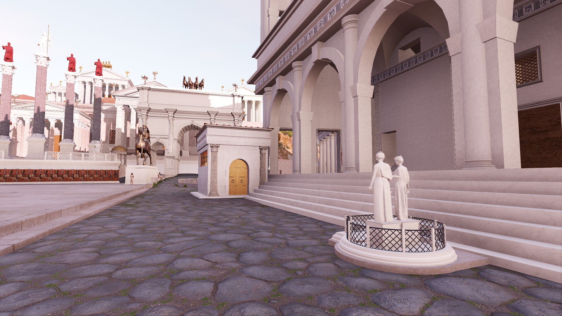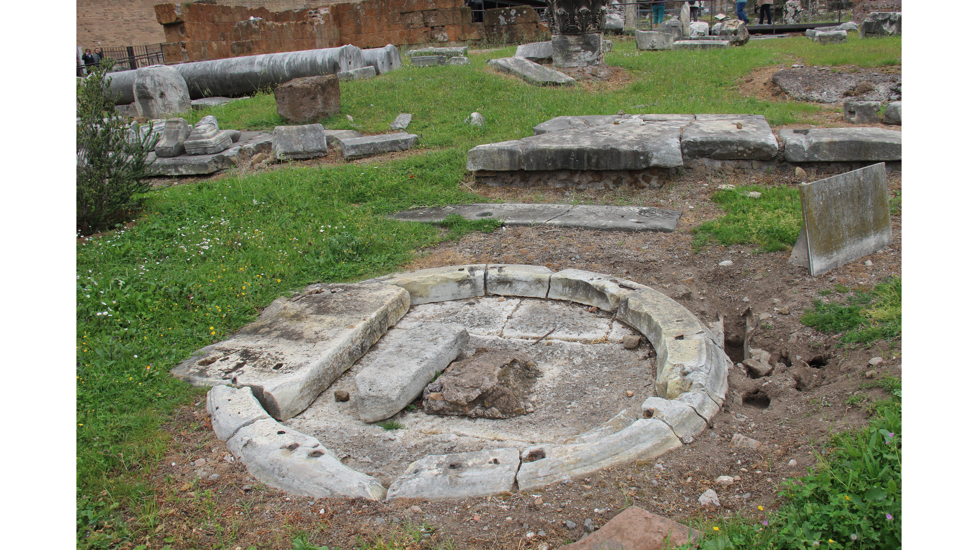Le petit sanctuaire de Vénus Cloacine est situé devant les marches de la basilique Emilienne. Il correspondrait au point de rencontre légendaire entre les Romains commandés par Romulus et les Sabins commandés par Titus Tatius lors de l’affrontement déclenché par l’enlèvement des Sabines.