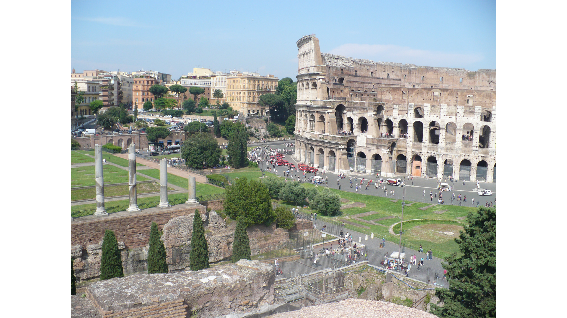 Vallée du Colisée : Photo prise à Rome aujourd'hui. Le Colisée vu depuis le temple de Vénus et RomeLe Colisée vu depuis le temple de Vénus et Rome - Cliché D. Lauvernier